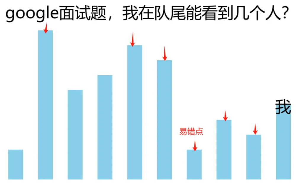 问:队尾的那个人最多能看到多少人?示例输入 [1,10,6,7,9,8,2,4,3,5],输出 6。