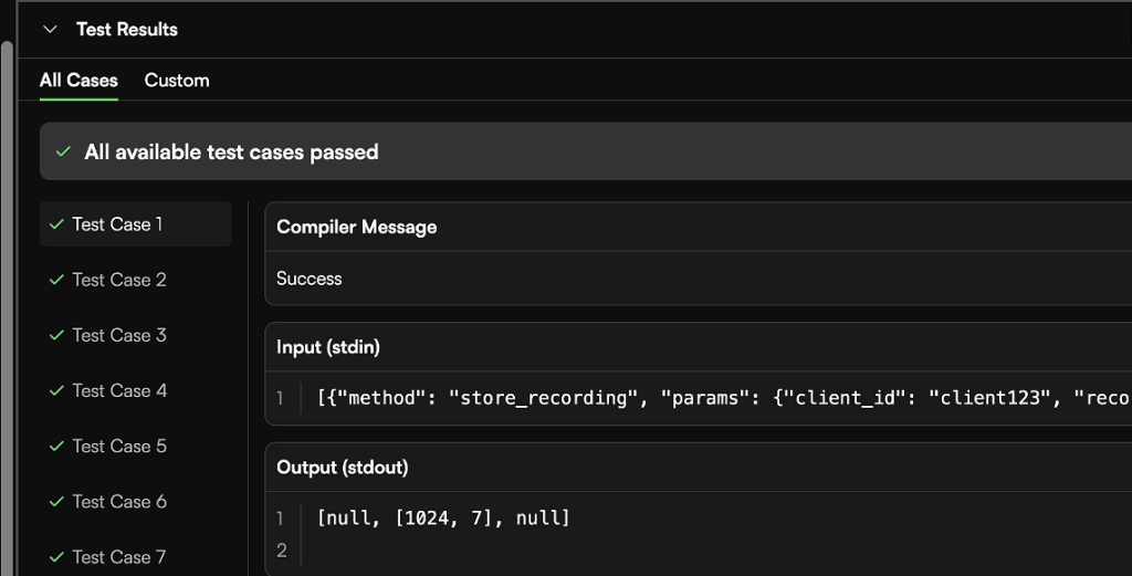 Your task is to implement a simplified version of a recording storage service that manages audio/video recordings with time-to-live (TTL) functionality. All operations that should be supported are listed below. Partial credit will be granted for each test passed, so press "Submit" often to run tests and receive partial credits for passed tests.
